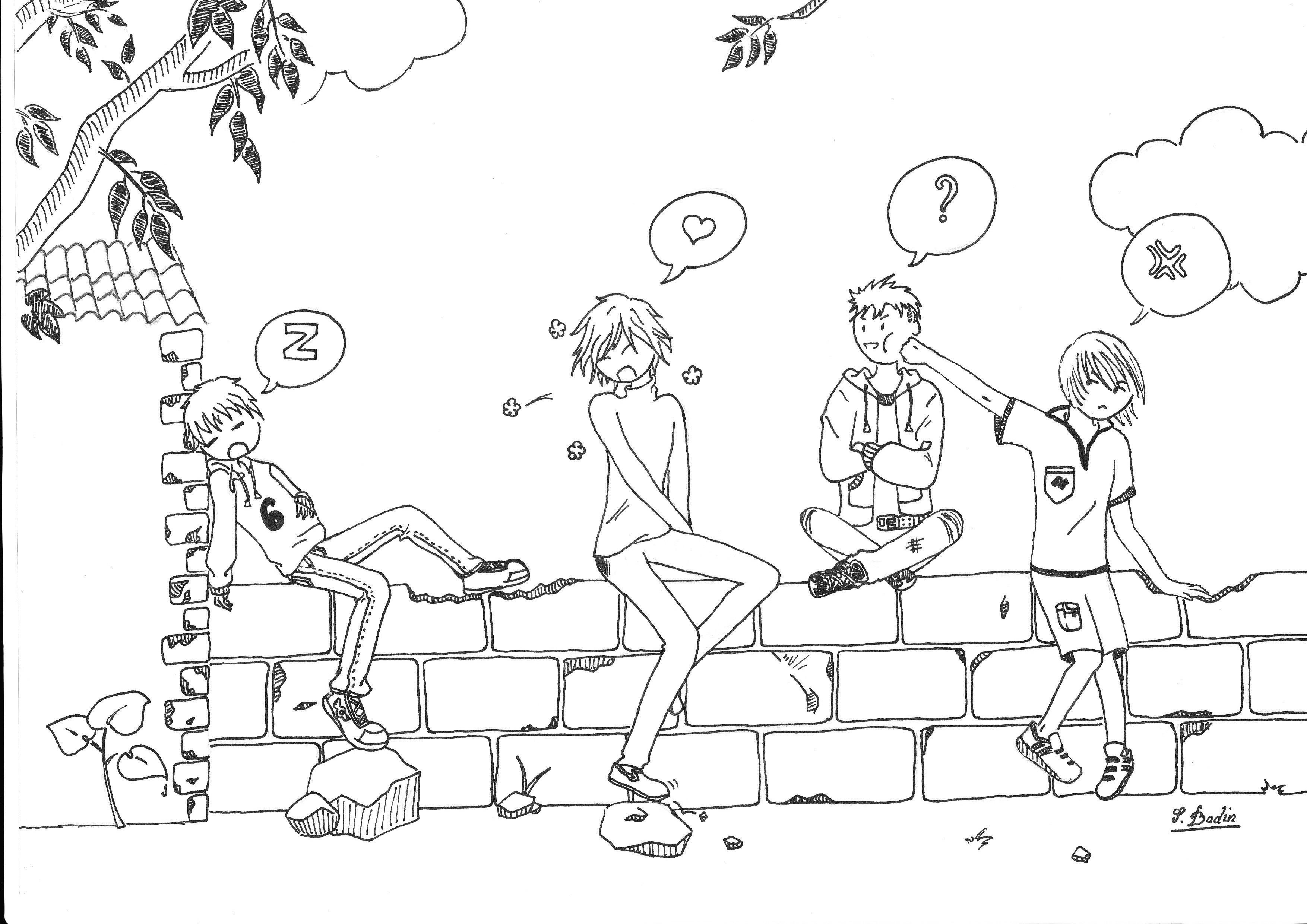 Il s'agit d'une caricature que j'ai faite de quatre types de ma classe qui me font beaucoup rire XD